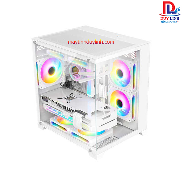– Thùng máy hỗ trợ các linh kiện tiêu chuẩn như bo mạch chủ M-ATX, CPU tản nhiệt khí, card đồ họa dài đến 340mm, nguồn ATX,… Thùng máy đi kèm 2 quạt LED RGB, mang lại hiệu ứng ánh sáng bắt mắt.