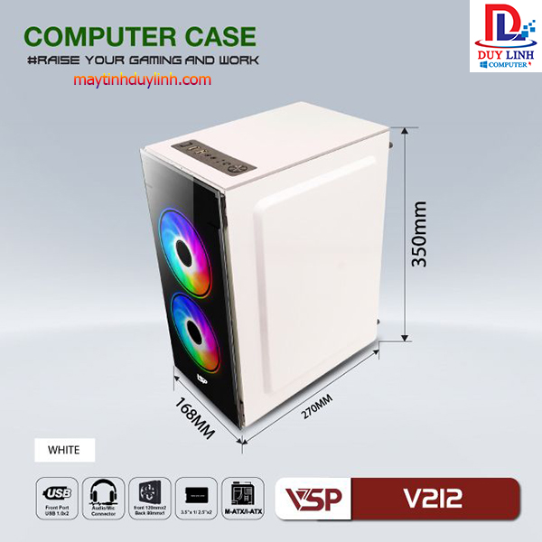 – Thùng máy VSP V212 Trắng Không Fan là một chiếc thùng máy có thiết kế đơn giản, tinh tế với màu trắng sang trọng. Thùng máy có kích thước Micro-ATX/ITX, phù hợp với nhu cầu sử dụng của người dùng phổ thông.