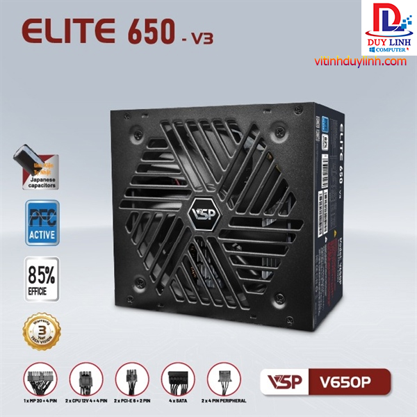 - Tên sản phẩm: Nguồn VSP Elite 650W V3