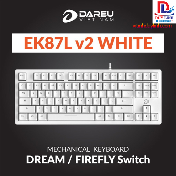 Phím cơ Dareu EK87L V2 màu Trắng ( không LED, không tiếng ồn)