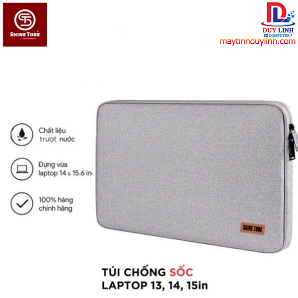 - Túi chống sốc Laptop SHINE TORE 15 inch đen + xám được làm từ chất liệu Polyester cao cấp, chống thấm nước và va đập tốt, bảo vệ laptop của bạn an toàn khỏi trầy xước và hư hỏng.
